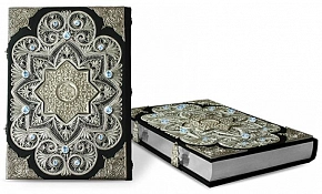 Подарочная книга "Коран" Большой с филигранью (серебро), топазами и литьем в замшевой шкатулке.