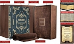 Составной переплет «Брадель», ручной работы, выполнен из натуральной кожи «Celeste Azzurro» производства итальянской кожевенной фабрики «Carisma». Обложка книги оформлена в авторской технике «рельефное тиснение по объемным узорам». Обрез вручную полирован и позолочен, оформлен поисковыми индексами.