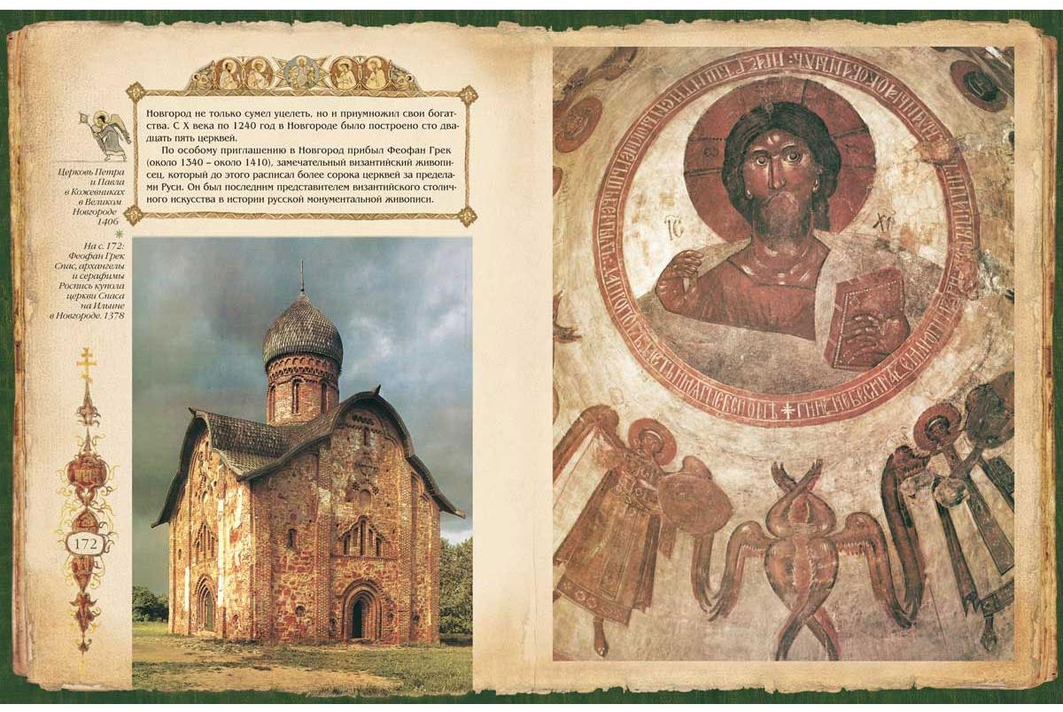 Душа России АННОТАЦИЯ Подарочное издание в ручном кожаном переплете «Душа России» – книга об уникальном, ни на кого не похожем духовном мире, истории России и составляющих ее душу: вере, молитвах, храмах, иконописи, церковнославянском языке, книгах и русских святых. Книга, в первую очередь будет интересна всем верующим и неверующим людям, кому небезразлична духовная культура нашей страны. Будет она и отличным подарком ко всем христианским праздникам. ОПИСАНИЕ Переплет ручной работы. Натуральная переплетная кожа. Цвет зеленый травяной. Каптал из шелковых нитей. Ляссе шелковое. Обрез торшонированный золотой фольгой. Блинтовое тиснение в виде колокола на обложке, русский орнамент по корешку. Тиснение полиграфической фольгой. Украшение переплета: фольгированная плашка с изображением Георгия Победоносца.