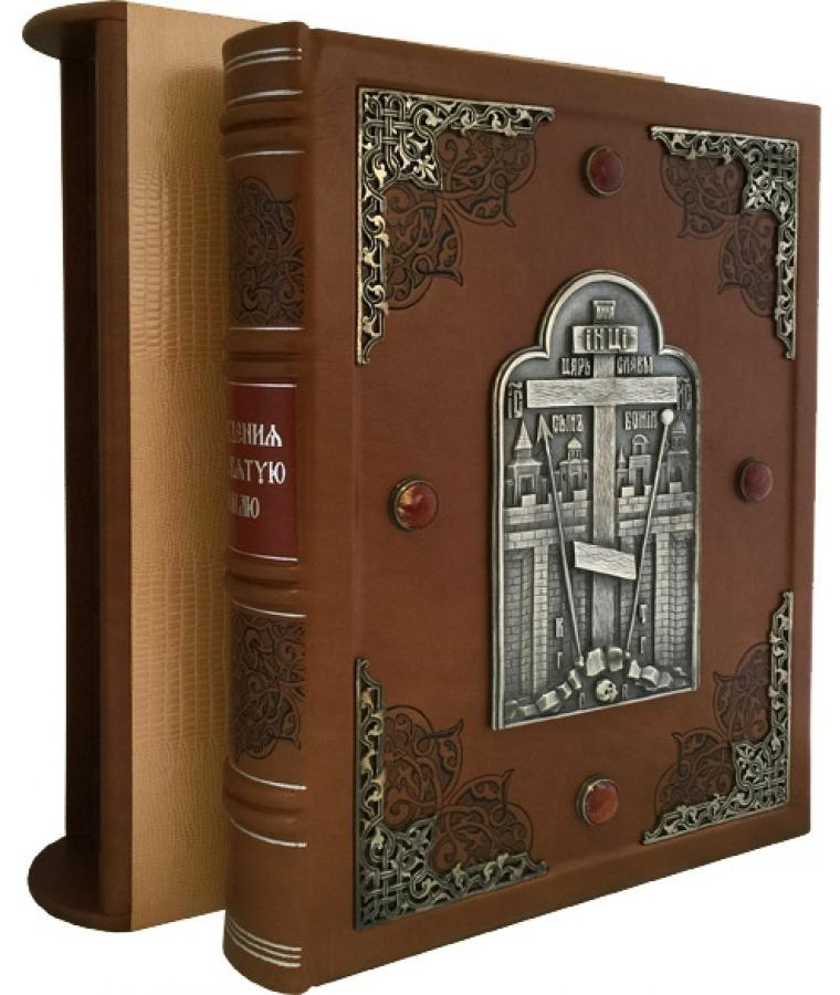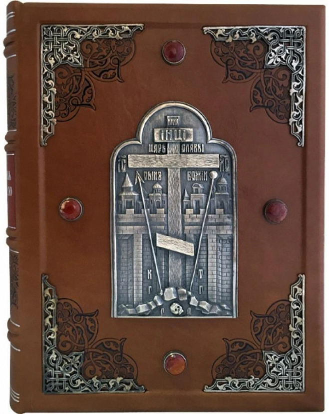 Подарочная книга "Хождения на Святую Землю." Экземпляр №2 ППМ.15.011 АННОТАЦИЯ Все книги Георгия Юдина, и особенно последние из серии «Христианские святыни» – «Аз, Буки, Веди», «Святой таинственный Афон» и «Хождения на Святую Землю», отличаются обилием редкого фактологического и изобразительного материала, неизвестного широкому кругу читателей. Георгий Николаевич не только писатель, но и заслуженный художник России, внесенный в почетный список Ганса Христиана Андерсена и награжденный несколькими международными премиями. Поэтому во всех своих авторских книгах он выступает и как иллюстратор, и как дизайнер, и как фотограф. ОПИСАНИЕ Французский цельнокожаный переплет. Ручная работа. Кожа переплетная «Elite» (Италия). Цвет «Песочный». Форзац раздельный на кожаной слизуре. Обрез окрашенный и торшонированный серебряной фольгой. Тиснение - полиграфическая фольга. Каптал наборный шелковый, ручное плетение. Ляссе шелковая лента. Украшение переплета: Ювелирные накладки - художественное литье, ручная работа - состаренная латунь. Ювелирные вставки - натуральный камень (яшма), огранка кабошон.