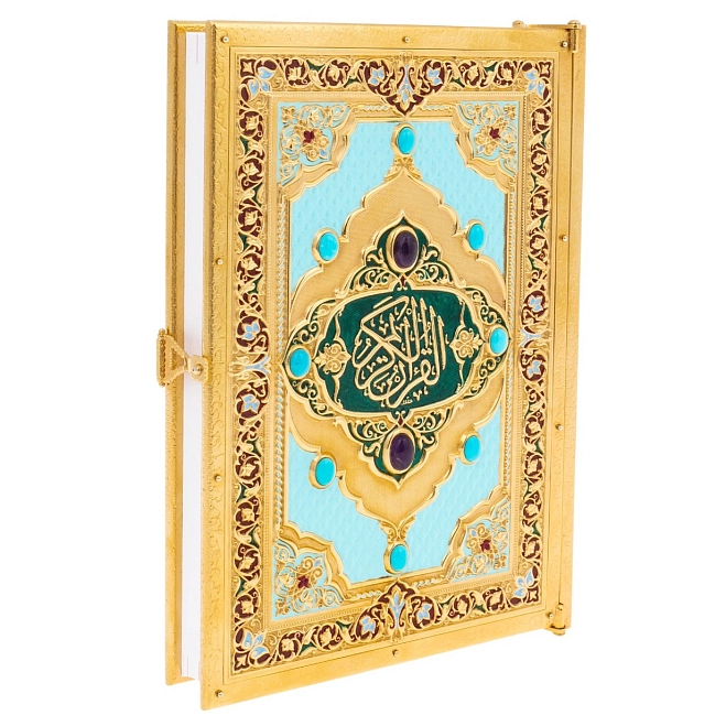 Этот Коран — величественное олицетворение духовной и материальной ценности, созданное искусными мастерами Златоуста. Окутанный роскошью и выполненный с необыкновенной тщательностью, он воплощает древние традиции, привнося в мир своего обладателя не только силу веры, но и мощь изысканного искусства. Сочетание нефрита и золота открывает символическую связь с землей и небом, становясь мостом между физическим и духовным. Изящные арабские надписи, выполненные золотом, добавляют уникальный оттенок изысканности и таинства. Их мягкое сияние словно нашёптывает древние откровения, отражая божественную гармонию и наполняя сердце благоговением. Этот золотой орнамент как бы оживает под взглядом, позволяя прикоснуться к вечному источнику вдохновения и духовной силы. Само золото — воплощение благородства и роскоши, оно окутывает каждую деталь Корана, не просто украшая, но подчеркивая его значимость и ставя на пьедестал, достойный величайших реликвий мира. Легкий отблеск золота, играющий на поверхности обложки, создает ощущение тепла и света, озаряя её и придавая особую значимость для настоящих ценителей прекрасного. Этот Коран станет не просто предметом коллекции, а ценным духовным спутником, отражающим вкус и статус владельца. Он будет напоминать о вековых традициях, о незыблемых основах веры и вечных истинах, а его красота — оставаться символом высокого искусства и утонченной роскоши.