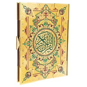 Коран подарочный "Малахитовый цветок" на арабском языке, Златоуст ОПИСАНИЕ Этот Коран — гимн величию, застывший в золоте и эмали, произведение, в котором древняя священная мудрость обретает достойную оправу. Издание являет собой образец безупречного мастерства, воплощая суть восточного великолепия, той утонченной роскоши, где каждый завиток орнамента, каждая линия каллиграфии звучит как мелодия эпох. Обложка книги — подлинный ювелирный шедевр, исполненный в лучших традициях восточного златоустовского искусства. Основание украшено сложным переплетением узоров, в которых читаются образы цветущих садов Востока, воплощение божественной гармонии и совершенства мироздания. В центре — знаковый символ, выполненный с изысканной точностью, словно сотканный из света. Инкрустация фианитами придает ему глубину сияния, а эмалевые вкрапления — живописную насыщенность. Страницы книги раскрываются подобно драгоценной реликвии, открывая перед читателем мир откровения и чистого знания. Литера тщательно выверена, текст напечатан с безупречной четкостью, а декоративные бордюры обрамляют каждую страницу, подчеркивая святость написанного. Каждый элемент оформления несет в себе не просто красоту, но глубокую смысловую наполненность: орнаменты символизируют вечность, неизменность мудрости, передающейся из поколения в поколение. Золотые застежки, укрепляющие переплет, служат не только украшением, но и символом неприкосновенности, напоминая, что знания, заключенные в этих страницах, подобны несметным сокровищам, хранимым с благоговением. Такое издание — не просто книга, но реликвия, достойная занять место в коллекции избранных. Это знак уважения к традициям, глубокой веры и возвышенного понимания мира. Этот Коран — нечто большее, чем изысканный подарок. Это духовный ориентир, символ силы и благородства, предназначенный для тех, кто ищет не только красоту в вещах, но и смысл, запечатленный в веках.