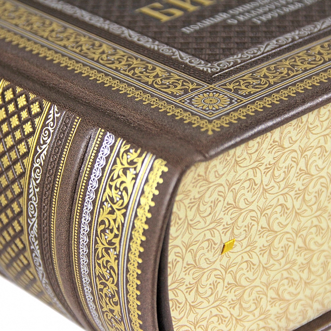 Подарочная книга "Библия. Книги ветхого и нового заветов. Синодальный перевод" АННОТАЦИЯ Впервые в России текст Библии, утвержденный Святейшим Синодом (так называемый Синодальный перевод) публикуется с оригинальными рисунками Гюстава Доре. Талантливый французский художник работал над ними два года для иллюстрированного издания Библии на немецком языке; этот перевод был выполнен писателем и раввином Людвигом Филиппсоном. Библия с гравюрами по рисункам Доре, вышедшая в 1866 г., стала настолько популярной, что через год оригинальные рисунки художника были опубликованы отдельным трехтомником. Именно они, а не выполненные по ним гравюры, воспроизводятся в настоящем издании. ОПИСАНИЕ Переплёт ручной работы из натуральной кожи. Форзац из дизайнерской бумаги. 4 бинта на корешке, ручной обработки. Каптал из натуральной кожи. Обрез блока полноцветная печать. Тиснение блинтовое, золотой и серебряной фольгой. Ляссе. Вес 2000г