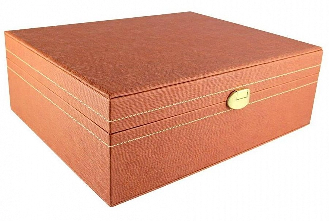 коробка с прошивкой, на замке, с ложементом. картон/эко-кожа 300х250х105 мм