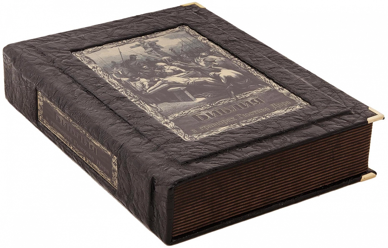 Библия в гравюрах Гюстава Доре (в коробе) АННОТАЦИЯ "Разными путями Бог открывает нам Свою любовь и истину — как через вечное живое Слово Свое, так и через непосредственное, личное общение с Ним". ОПИСАНИЕ Цельнокожаный переплёт ручной работы, украшен иллюстрированной вставкой из цветного металла. Текст книги напечатан на мелованной бумаге и дополнен цветными иллюстрациями. Обрез оформлен в технике "Перо павлина". Ляссе из шёлковой ленты. Форзац цельный из дизайнерской бумаги. Футляр кожаный, вдохновлён дизайном книги. Книга представлена в оригинальном подарочном коробе, перчатки, по желанию сертификат (может быть именным) в комплекте. Цветовое сочетание переплёта и упаковки может отличаться от представленных на фото.