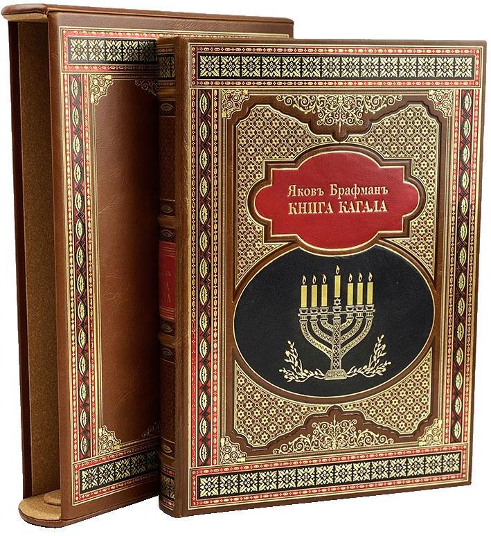 Книга кагала ( в футляре) АННОТАЦИЯ Книга кагала Якова Брафмана в первые была издана в 1869 году в г.Вильно.. В данной книге напечатан русский перевод 285 кагальных актов, относящихся к 1794—1803 годам. На основании которых автор доказывал, что Кагал фактически продолжает существовать и, опираясь на раввинский суд, представляет собою государство в государстве, с организованной системой угнетения личности общиной, корпоративной эксплуатацией христианского населения и упорной отчужденностью от всего не еврейского. Репринт первого издания 1869г. Вторая часть книги -О книге Кагала И. И. Шершевского, апологетика еврейской общины на содержание Книга Кагала. ОПИСАНИЕ Уникальное репринтное издание, переплетенное вручную из высококачественной кожи растительного дубления производства Италии. Крашеный в тон переплетного материала обрез. Классическая стилистика переплета, с сочетанием цветного, блинтового и золотого тиснения. Высококачественная дизайнерская бумага. Дублюра. Кожаный подарочный футляр.