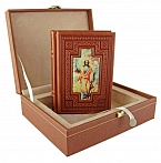 МОЛИТВОСЛОВ АННОТАЦИЯ В издание вошли основные молитвы, тропари, каноны на русском языке, необходимые мирянам. Кроме того, книга включает Заповеди Божии, перечисление и объяснение смертных грехов, небольшой словарик с объяснением малопонятных слов и выражений. Для удобства чтения в тексте молитв проставлены ударения. ИСПОЛНЕНИЕ Переплёт ручной работы из натуральной кожи. Форзац из дизайнерской бумаги. 4 бинта на корешке, ручной обработки. Каптал золотой из натуральной кожи. Обрез блока торшонированный золотой. Тиснение блинтовое. Ляссе. ПОДАРОЧНАЯ УПАКОВКА коробка с прошивкой, на замке, с ложементом. картон/эко-кожа 195х235х80 мм