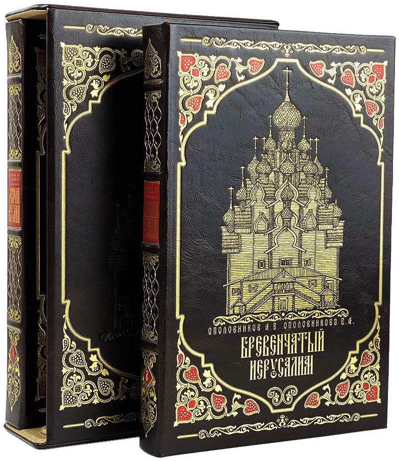 Бревенчатый Иерусалим 2 тома (в футляре) АННОТАЦИЯ Красиво оформленное репринтное издание в кожаном переплете с трехсторонним окрашенным обрезом и шелковым ляссе. В оформлении применяется уникальная технология "аппликации", выполненная из двух разных видов натуральной кожи. Дизайн дополнен оригинальным сочетанием блинтового и золотого тиснения, а также богато оформленными дублюрами составными форзацами. Подарочный футляр. ОПИСАНИЕ «Бревенчатый Иерусалим» - это четвертая книга, выпущенная издательством «Ополо», название которое следует понимать как производное от фамилии одного из самых известных исследователей русского деревянного зодчества, Александра Викторовича Ополовникова (1911-1994). Его дочь, Елена Александровна Ополовникова, продолжает дело отца, развивая его идеи, систематизируя собранный им архив и превращая все это в основательные, хорошо иллюстрированные и подробные издания подарочного качества. В отличие от предшествующих книг «Ополо», «Бревенчатый Иерусалим» выглядит как начало новой серии объемного каталога деревянных храмов. Часть 1 – так обозначен этот том, посвящена клетским часовням и церквям – самому простому, базовому слою разветвленной и неоднозначной типологии российского деревянного зодчества. Изложенный материал подробен, хорошо иллюстрирован, присутствует много редких фотографий, планов, чертежей, графических реконструкций. Но каталог – не единственная цель авторов (их обозначено два – А.В. и Е.А. Ополовниковы, а предисловие написано профессором Московской Духовной Академии Михаилом Дунаевым). Вторая задача высокодуховна и смело выходит за рамки каталогизации. Описывая свой материал, авторы стремятся постичь идею небесного града Иерусалима, присутствующую, по их убеждению, во всех, даже в столь обыденных и рядовых проявлениях русского храмового зодчества, как клетские церкви и часовни. Эта задача, столь нехарактерная для каталога, придает авторскому языку поэтическую возвышенность, образность и раскованный полет мысли, традиционно с подобным материалом несопоставимые. Авторы привлекают широкий круг литературных ассоциаций, сочетая историко-архивные сведения с основными понятиями теологии, которые, на всякий случай, терпеливо разъясняются для неискушенных читателей. Они даже идут дальше, постоянно опираясь на цитаты из А.И. Солженицына, в частности, считают свое поэтико-богословское исследование своего рода «архитектурным покаянием» перед старообрядцами, к которому призывал и призывает знаменитый идеолог русской культуры.