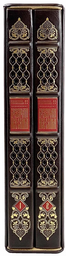 Красиво оформленное репринтное издание в кожаном переплете с трехсторонним окрашенным обрезом и шелковым ляссе. В оформлении применяется уникальная технология "аппликации", выполненная из двух разных видов натуральной кожи. Дизайн дополнен оригинальным сочетанием блинтового и золотого тиснения, а также богато оформленными дублюрами составными форзацами. Подарочный футляр.