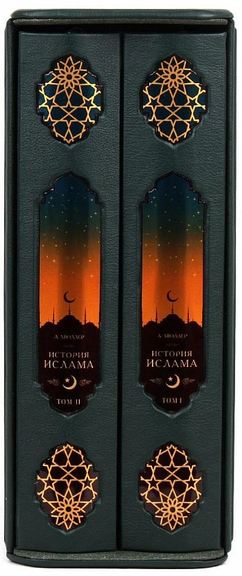 История Ислама АННОТАЦИЯ Ислам зародился на юго-западе Аравийского полуострова в начале VII в. в Хиджазе среди племен Западной Аравии. Основатель – Мухаммед (570–632 гг.), провозгласивший себя пророком. Созданная им община стала основой сформировавшегося впоследствии государственного образования – Арабского халифата. ОПИСАНИЕ Цельнокожаный двухуровневый переплёт ручной работы, украшен иллюстрированной вставкой из цветного металла. Текст книги напечатан на бумаге Palatina Avorio 100 Австрийского производства . Обрез оформлен в технике торшонирование. Ляссе из шёлковой ленты. Форзац цельный из дизайнерской бумаги. Футляр кожаный, вдохновлён дизайном книги. Книга представлена в оригинальном подарочном коробе, перчатки, по желанию сертификат (может быть именным) в комплекте. Цветовое сочетание переплёта и упаковки может отличаться от представленных на фото.