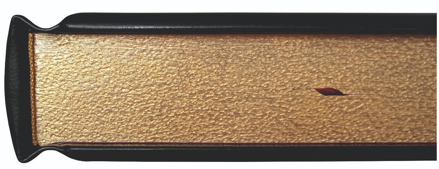 Составной переплет ручной работы. Натуральная переплетная кожа. Каптал из шелковых нитей. Ляссе шелковое. Обрез торшонированный золотой фольгой. Украшение переплета: тиснение полиграфической фольгой.