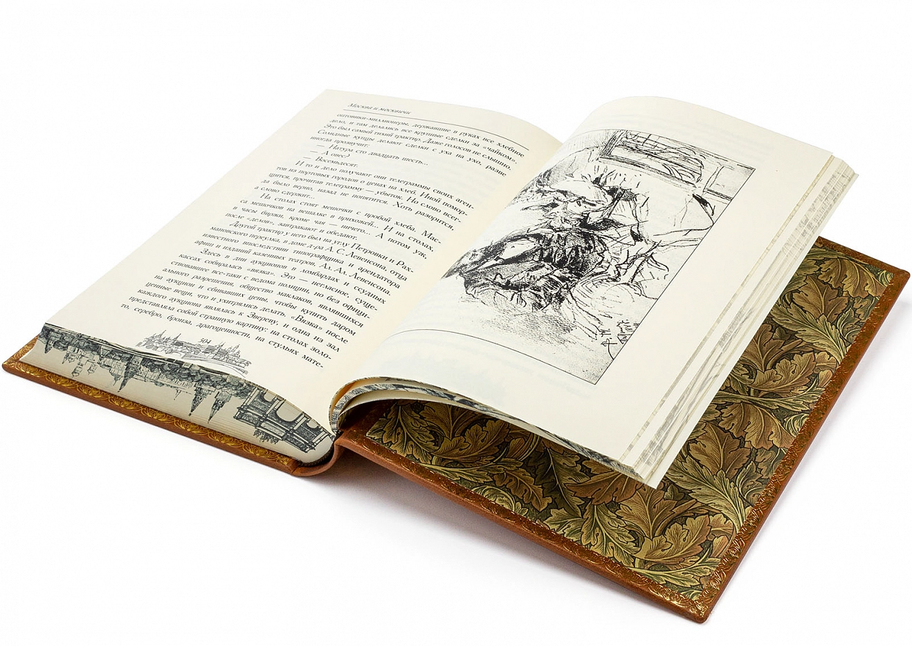 Французский стиль кожаного переплета, уникальное тиснение по коже. Переплетная кожа редкого винтажного цвета. Книги отпечатаны на дизайнерской бумаге с тематическим оформлением. Обрезы блока страниц в ручную отшлифованы с нанесением тематического рисунка. Уникальная ручная работа!