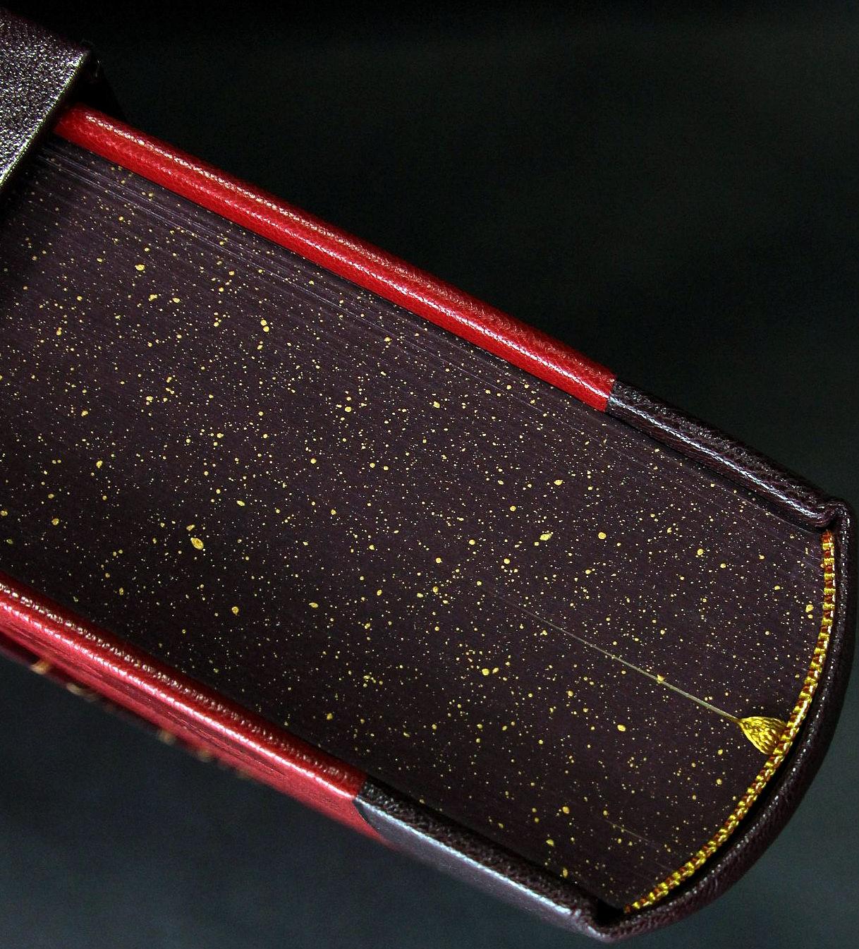 Переплет украшен тиснением золотой и медной фольгой, шелковые каптал и ляссе, форзацы из дизайнерской бумаги