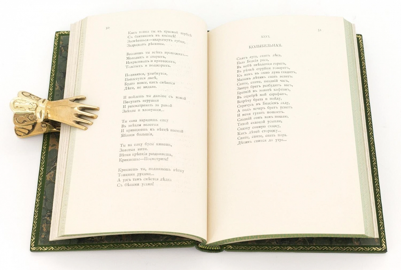 - Сборник помещен в цельнокожаный футляр с ручной авторской росписью. Художник О.Конорова.