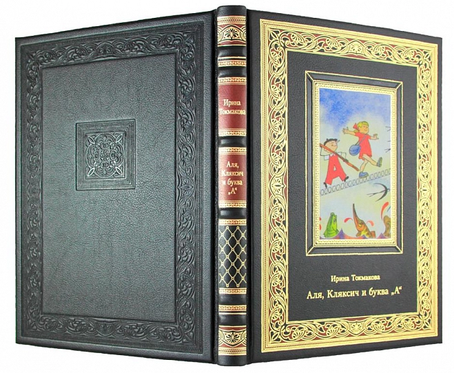 БМЛ "Аля, Кляксич и буква „А“" Ирина Токмакова АННОТАЦИЯ Книга Ирины Токмаковой «Аля, Кляксич и буква „А“. Три истории» вклю- чает три повести о приключениях отважной девочки Али в мире букв и цифр: «Аля, Кляксич и буква „А“», «Может Нуль не виноват?», а также «Аля, Кляксич и Вреднюга». Учить буквы и цифры с помощью этой книги очень интересно! Кроме увлекательных историй в ней есть и знания для ребят. Из- дание великолепно иллюстрировано цветными картинками народного худож- ника РФ Виктора Чижикова. ОПИСАНИЕ Классический европейский переплёт ручной работы из натуральной кожи. Форзац из дизайнерской бумаги Malmero с тиснением орнамента золотой фольгой. 6 бинтов на корешке, ручной обработки. Каптал золотой из натуральной кожи. Обрез блока - золото с торшонированием. Тиснение блинтовое, золотой и цветной фольгой. Ляссе. Инкрустация кожаной вставкой с полноцветной печатью. Вес 870г