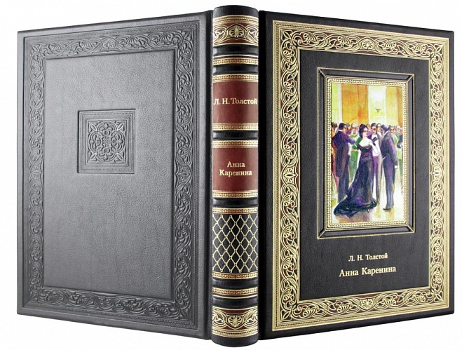 БМЛ "Анна Каренина" Л. Н. Толстой АННОТАЦИЯ В одном из величайших произведений мировой литературы Лев Николаевич Толстой (1828–1910) не только рассказывает историю трагической любви замужней женщины, бросившей мужа ради красавца офицера, но и всесторонне освещает важнейшие грани жизни современного автору общества в переломный период его развития. Книгу украшают рисунки российских художников Алексея Михайловича Корина (1865–1923), Александра Викторовича Моравова (1878–1951) и Михаила Михайловича Щеглова (1885–1955). ОПИСАНИЕ Классический европейский переплёт ручной работы из натуральной кожи. Форзац из дизайнерской бумаги Malmero с тиснением орнамента золотой фольгой. 6 бинтов на корешке, ручной обработки. Каптал золотой из натуральной кожи. Обрез блока - золото с торшонированием. Тиснение блинтовое, золотой и цветной фольгой. Ляссе. Инкрустация кожаной вставкой с полноцветной печатью. Вес 1460г