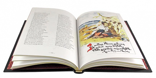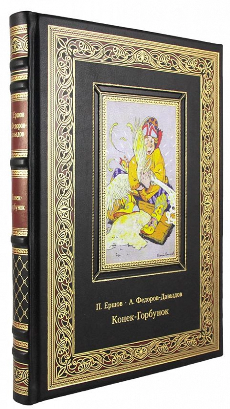 БМЛ "Конек-горбунок" Ершов П. АННОТАЦИЯ Ставшую классикой детской отечественной литературы сказку Петра Ершова «Конек-горбунок» в этом издании украшают великолепные цветные иллюстрации А. Афанасьева. В издание также включены отрывки из воспоминаний о Ершове, оставленные его университетским товарищем А. К. Ярославцевым, а также мало известный стихотворный вариант сказки о Коньке-Горбунке, выполненный одним из основателей журнала «Мурзилка» — А. А. Федоровым-Давыдовым. Его текст проиллюстрирован цветными рисунками Е. Соколова. ОПИСАНИЕ Классический европейский переплёт ручной работы из натуральной кожи. Форзац из дизайнерской бумаги Malmero с тиснением орнамента золотой фольгой. 6 бинтов на корешке, ручной обработки. Каптал золотой из натуральной кожи. Обрез блока - золото с торшонированием. Тиснение блинтовое, золотой и цветной фольгой. Ляссе. Инкрустация кожаной вставкой с полноцветной печатью. Вес 890г