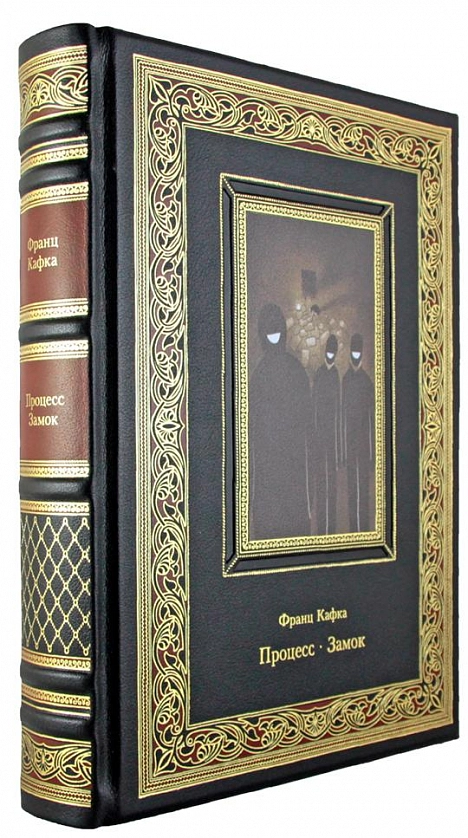 БМЛ "Процесс. Замок" Франц Кафка АННОТАЦИЯ В сборник вошли два произведения австрийского писателя Франца Кафки (1883–1924) — романы «Процесс» (1914–1915) и «Замок» (1922), ставшие своеобразным символом творчества автора, одни из самых загадочных текстов XX века. Романы переведены на русский язык Ритой Яковлевной Райт-Ковалевой (1898–1988), в их оформлении использованы 65 рисунков современного художника Веры Дубровской. ОПИСАНИЕ Классический европейский переплёт ручной работы из натуральной кожи. Форзац из дизайнерской бумаги Malmero с тиснением орнамента золотой фольгой. 6 бинтов на корешке, ручной обработки. Каптал золотой из натуральной кожи. Обрез блока - золото с торшонированием. Тиснение блинтовое, золотой и цветной фольгой. Ляссе. Инкрустация кожаной вставкой с полноцветной печатью. Вес 870г