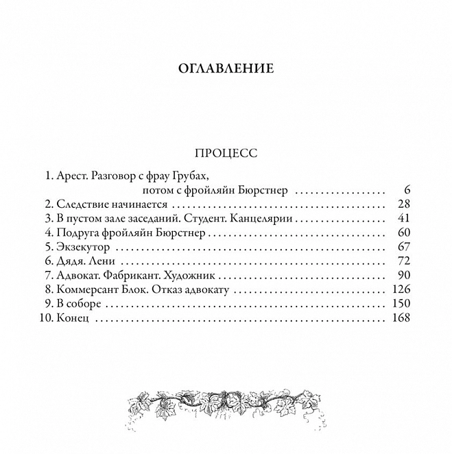 В сборник вошли два произведения австрийского писателя Франца Кафки (1883–1924) — романы «Процесс» (1914–1915) и «Замок» (1922), ставшие своеобразным символом творчества автора, одни из самых загадочных текстов XX века. Романы переведены на русский язык Ритой Яковлевной Райт-Ковалевой (1898–1988), в их оформлении использованы 65 рисунков современного художника Веры Дубровской.