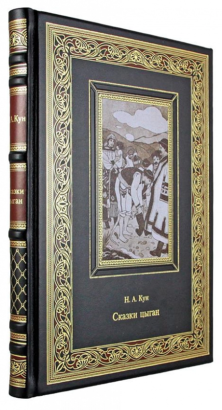 БМЛ "Сказки цыган" Н. А. Кун АННОТАЦИЯ Основанная на фольклорных записях книга «Сказки цыган» знаменитого историка, писателя и педагога Николая Альбетовича Куна была впервые издана в 1922 г. С тех пор она не переиздавалась и стала библиографической редкостью. Данное издание включает обе ее части: «Поверья цыган» и «Сказки цыган». Текст предваряет небольшое введение «Вечер в цыганском таборе». В книге воспроизведены рисунки Л. М. Алексеевской, которые украшали издание 1922 г. ОПИСАНИЕ Классический европейский переплёт ручной работы из натуральной кожи. Форзац из дизайнерской бумаги Malmero с тиснением орнамента золотой фольгой. 6 бинтов на корешке, ручной обработки. Каптал золотой из натуральной кожи. Обрез блока - золото с торшонированием. Тиснение блинтовое, золотой и цветной фольгой. Ляссе. Инкрустация кожаной вставкой с полноцветной печатью. Вес 500г