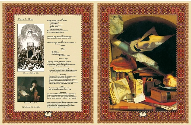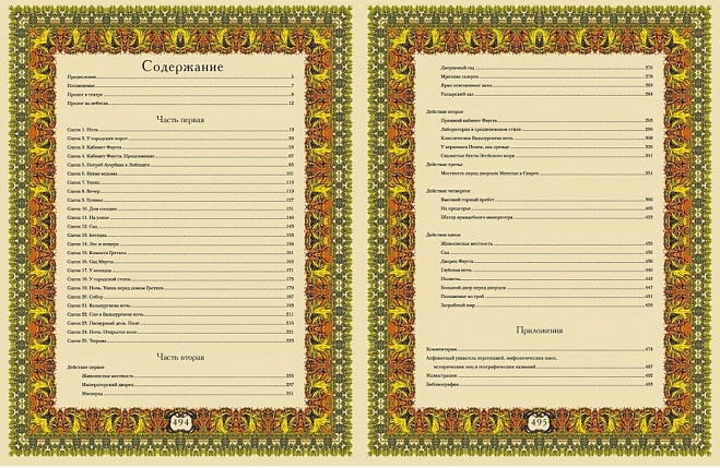 Еще одно из величайших произведений мировой литературы в оформлении по принципам серии: это энциклопедическое издание содержит более 1200 иллюстраций, в том числе из лучших изданий прошлого века. Многочисленные приложения: прозаический перевод сцены Вальпургиева ночь А.Л. Соколовского, комментарии, алфавитный указатель имен действующих лиц, алфавитный указатель мифологических имен и исторических лиц, алфавитный указатель географических названий, предметный указатель, библиография.