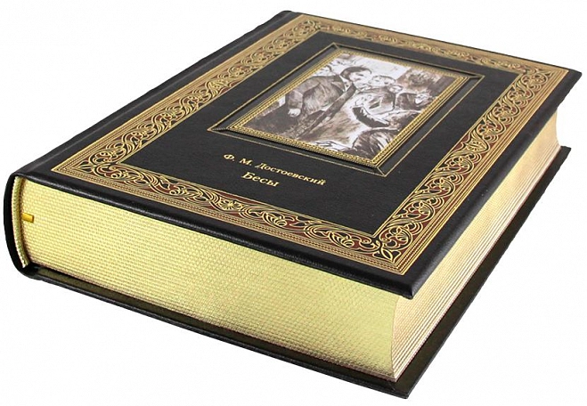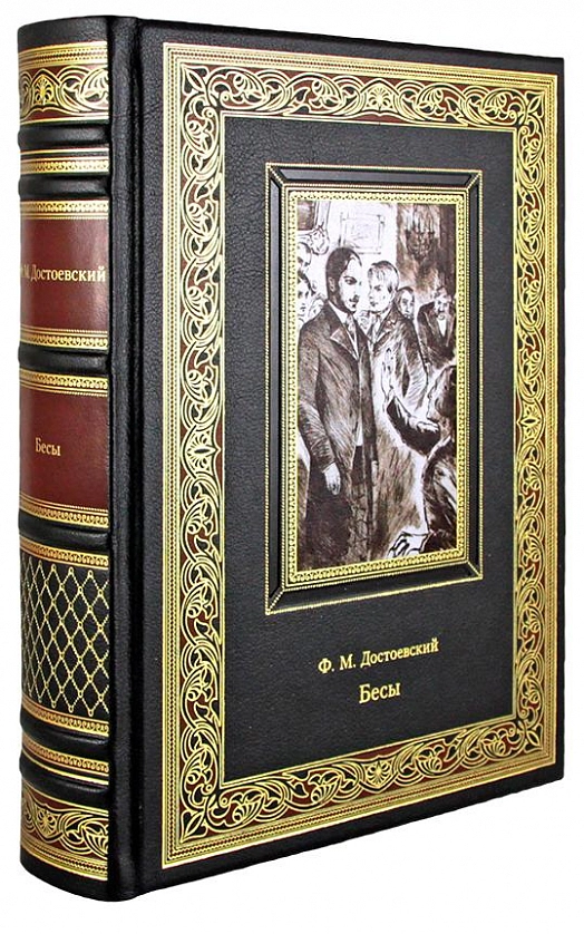 Подарочная книга "Бесы" Достоевский Ф.М. АННОТАЦИЯ Роман «Бесы» (1871–1872) является одним из важнейших в творческом наследии Ф. М. Достоевского. Толчком к его созданию послужило первое в истории революционного движения в России политическое убийство, совершенное группой революционеров-террористов во главе с Сергеем Нечаевым. Глубина философско-религиозной проблематики, острота постановки социальных и нравственных вопросов обусловили горячие споры, которые ведутся вокруг этого произведения со времени его выхода в свет. Сложную жанровую природу, сущность авторского пафоса «Бесов» традиционно определяют в терминах «роман-трагедия» и «роман-предупреждение». Издание сопровождено обширными комментариями. Вступительная статья «Репетиция русского апокалипсиса» помогает лучше разобраться в авторской художественной концепции романа. ОПИСАНИЕ Классический европейский переплёт ручной работы из натуральной кожи. Форзац из дизайнерской бумаги Malmero с тиснением орнамента золотой фольгой. 6 бинтов на корешке, ручной обработки. Каптал золотой из натуральной кожи. Обрез блока - золото с торшонированием. Тиснение блинтовое, золотой и цветной фольгой. Ляссе. Инкрустация кожаной вставкой с полноцветной печатью. Вес 1520г