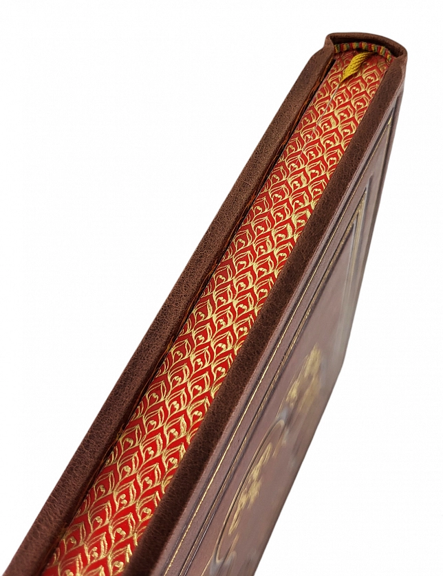 Обрез блока с художественным оформлением: окрашен и гравирован вручную;