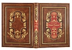 Художественное двухцветное тиснение на обложке и корешке; вставки из шагреневой кожи другого цвета.