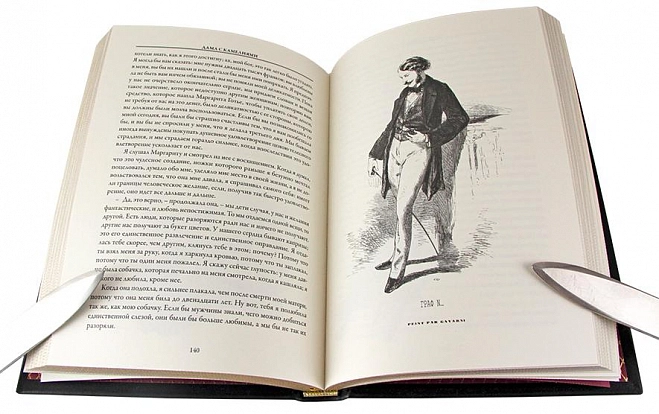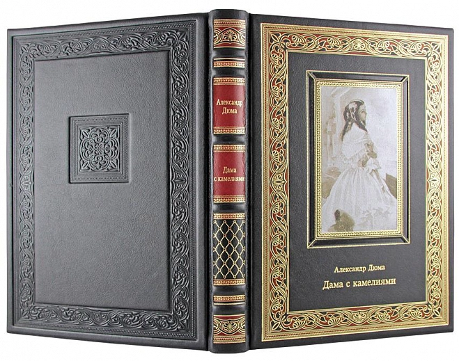 Подарочная книга "Дама с камелиями" Александр Дюма-сын АННОТАЦИЯ Знаменитый и нестареющий роман Александра Дюма-сына в переводе С. М. Антик о драматической любви между умирающей от чахотки парижской куртизанкой, прообразом которой была возлюбленная Дюма Мари Дюплесси, и ее пылким воздыхателем Арманом Дювалем в этом издании проиллюстрирован рисунками двух французских художников: графика первой половины XIX в. Поля Гаварни и жившего на рубеже XIX и XX веков живописца Жоржа Жордика-Пиньона. ОПИСАНИЕ Классический европейский переплёт ручной работы из натуральной кожи. Форзац из дизайнерской бумаги Malmero с тиснением орнамента золотой фольгой. 6 бинтов на корешке, ручной обработки. Каптал золотой из натуральной кожи. Обрез блока - золото с торшонированием. Тиснение блинтовое, золотой и цветной фольгой. Ляссе. Инкрустация кожаной вставкой с полноцветной печатью. Вес 750г