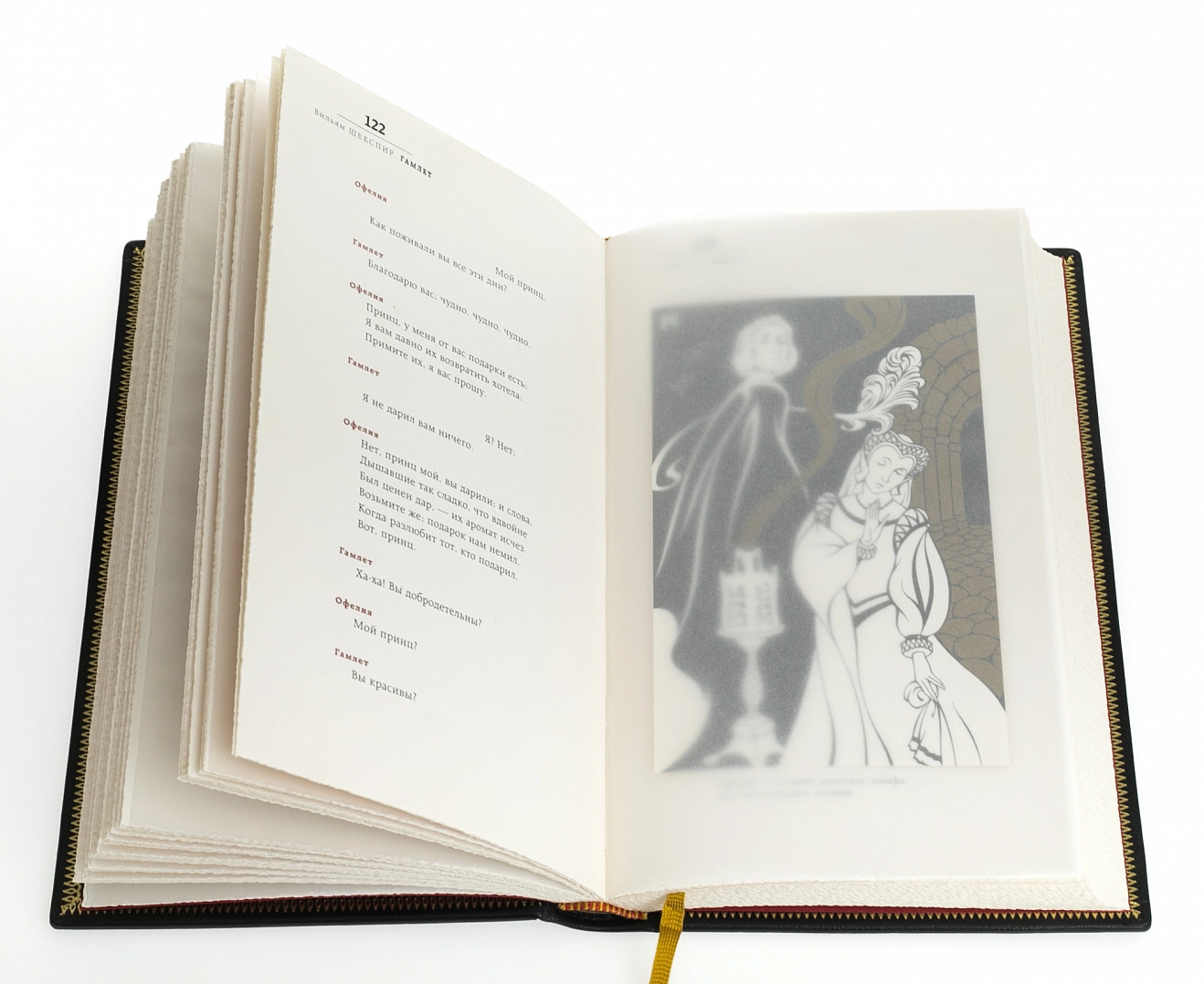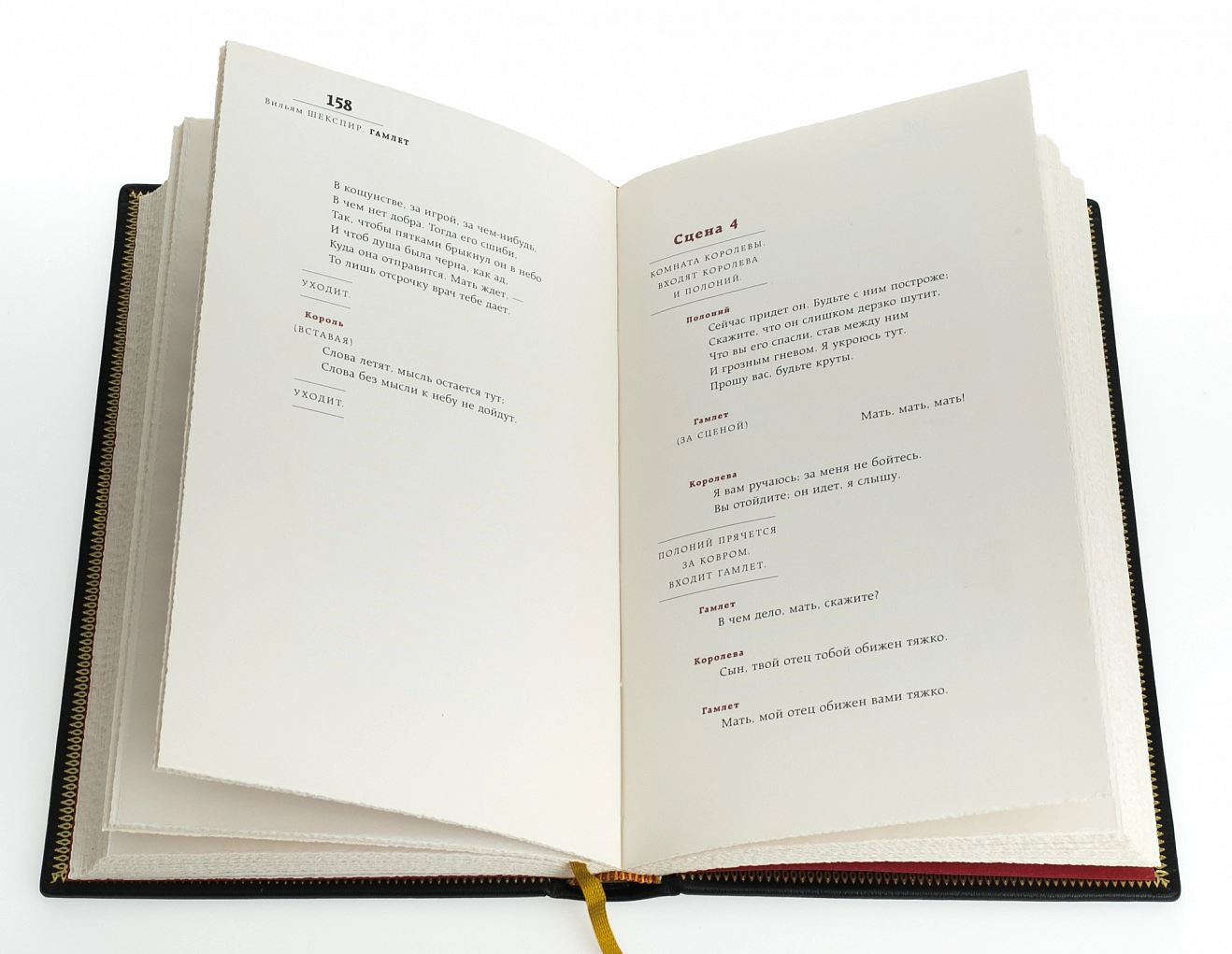 Подарочная книга "Гамлет" АННОТАЦИЯ В трагедии Уильяма Шекспира "Гамлет" принц датский сталкивается с невыносимой дилеммой после того, как призрак его отца повелевает ему отомстить за его убийство — убийство, совершенное собственным братом, Клавдием, ныне королем. Гамлет, погруженный в горе и сомнения, разрывается между долгом мести и моральными противоречиями, проходя через череду интриг, обмана и безумия. Эта бессмертная пьеса исследует сложные темы мести, морали, безумия, власти и человеческой природы. Гамлет, один из самых известных и противоречивых персонажей мировой литературы, заставляет читателя задуматься о природе добра и зла, о цене справедливости и о хрупкости человеческой жизни. Через остроумные диалоги, драматические сцены и глубоко психологические портреты персонажей, Шекспир создает произведение, которое уже веками волнует и вдохновляет читателей и зрителей по всему миру. "Гамлет" — это не просто история о мести, это глубокое философское исследование человеческой души