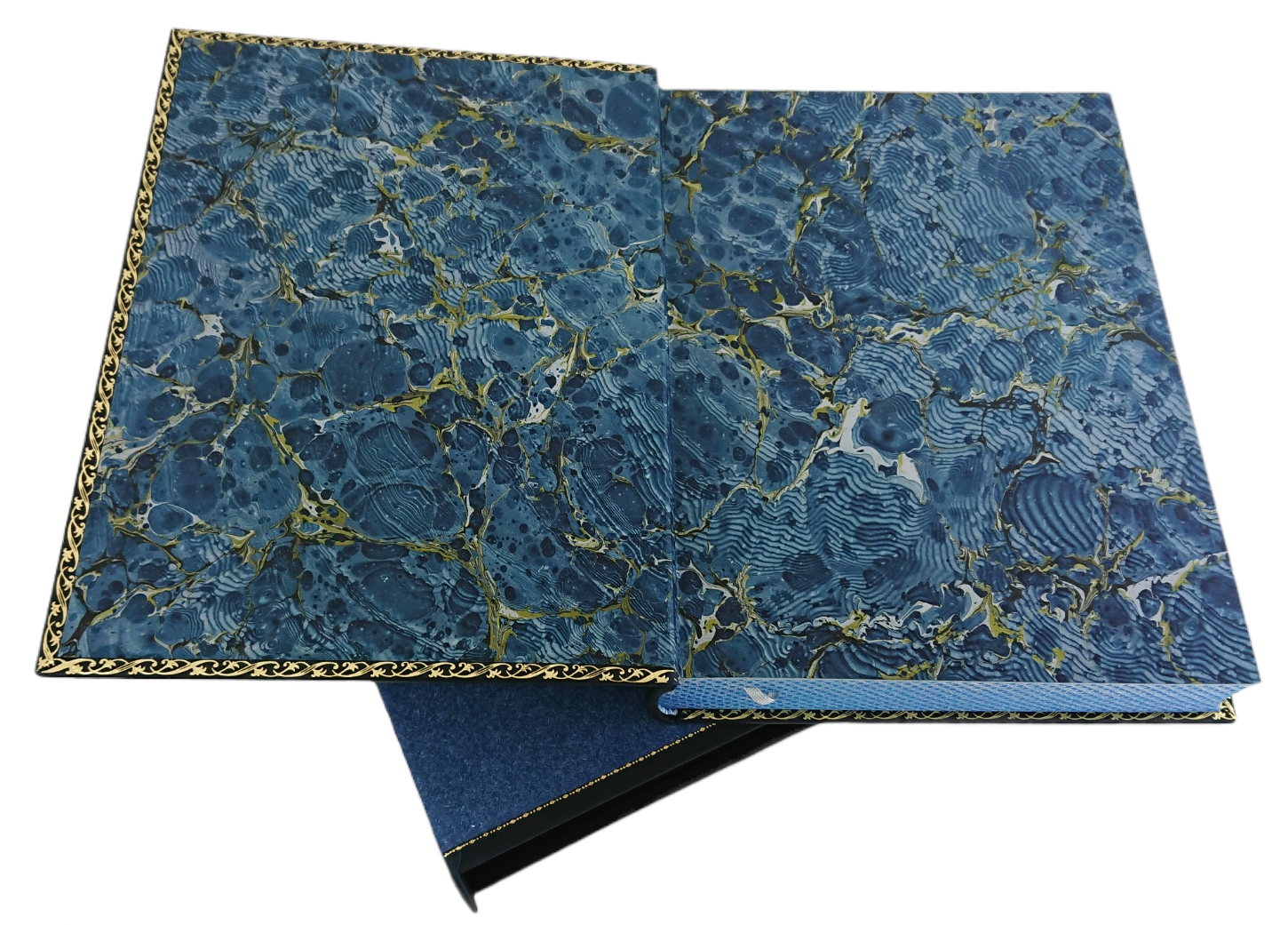 Форзац выполнен из мраморной бумаги ручного крашения;