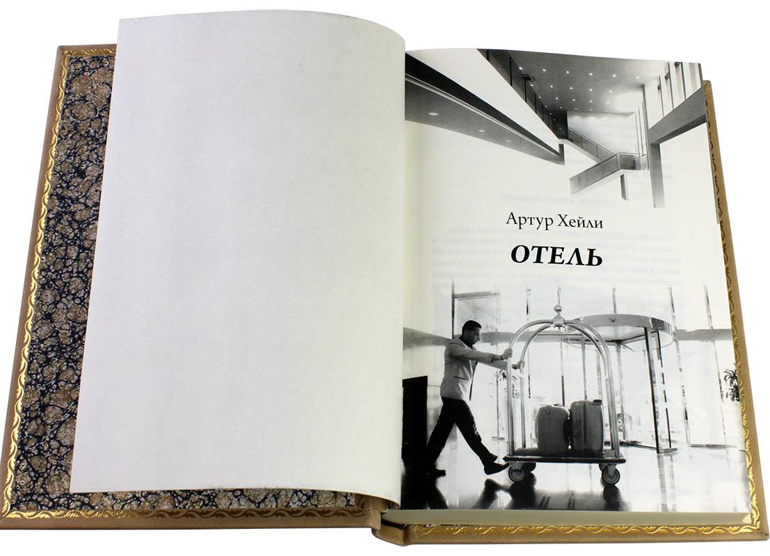 АРТУР ХЕЙЛИ «ОТЕЛЬ» ПОДАРОЧНОЕ ИЗДАНИЕ АННОТАЦИЯ Роман Отель Артура Хейли в подарочном издании, кожаный переплет в элегантном французском стиле. Цветное и блинтовое тиснение на очень красивой коже цвета кофе с молоком, это натуральный цвет, в стиле дорогих чемоданов эпохи сверхзвуковых "Конкордов". Книжный блок тонирован теплым оттенком белого, книгу очень приятно держать в руках и просто рассматривать. Превосходный и дорогой подарок, роман-бестселлер в уникальном оформлении. Данную книгу можно купить на сайте, также можете посмотреть и другие книги этого автора. Бесплатная доставка по Москве. ИСПОЛНЕНИЕ Французский стиль кожаного переплета, уникальный дизайн тиснения, цвет натуральной кожи, обрезы книжного блока тонированы. Книга отпечатана на дизайнерской бумаге, мраморная бумага в оформлении форзацев. Подарочное издание в кожаном переплете, ограниченный тираж. Вы можете заказать издание книг в кожаном переплете для личной библиотеки или в подарок. Наше производство имеет огромный опыт выполнения самых сложных заказов, изготовление уникальных книг, это наше призвание!