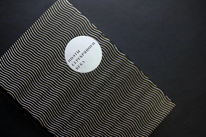 Шелковые каптал и ляссе, форзацы из дизайнерской бумаги, переплет украшен тиснением золотой и серебряной фольгой