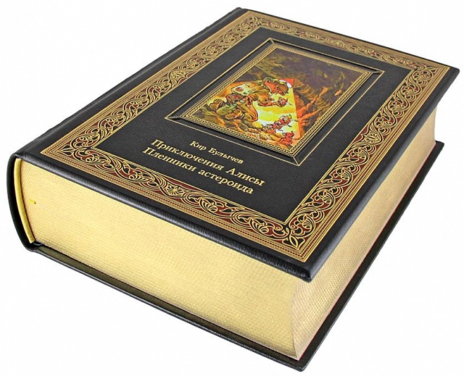 БМЛ "Приключения Алисы. Пленники астероида." Кир Булычёв АННОТАЦИЯ Вторая книга в серии БМЛ о приключениях Алисы Селезневой — героини, придуманной писателем-фантастом И. В. Можейко, который обычно выступал под псевдонимом Кир Булычёв — включает девять повестей: «Пленники астероида», «Заповедник сказок», «Козлик Иван Иванович», «Лиловый шар», «Гай-до», «Узники „Ямагири-мару“», «Конец Атлантиды», «Город без памяти» и «Подземная лодка», а также пять рассказов: «Вокруг света за три часа», «Это вам не яблочный компот», «Второгодники», «Это ты, Алиса?», «Чудовище у родника». Рисунки в этой книге выполнены талантливым художником и новатором отечественной мультипликации Е. Т. Мигуновым." ОПИСАНИЕ Классический европейский переплёт ручной работы из натуральной кожи. Форзац из дизайнерской бумаги Malmero с тиснением орнамента золотой фольгой. 6 бинтов на корешке, ручной обработки. Каптал золотой из натуральной кожи. Обрез блока - золото с торшонированием. Тиснение блинтовое, золотой и цветной фольгой. Ляссе. Инкрустация кожаной вставкой с полноцветной печатью. Вес 1730г