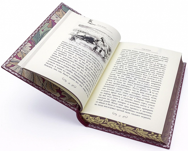 Французский стиль кожаного переплета, уникальное тиснение по коже. Книги отпечатаны на итальянской дизайнерской бумаге "ARENA IVORY", приятного для глаз цвета и с использованием хорошо читаемого шрифта, страницы с тематическим оформлением и множеством интересных иллюстраций, все это сделано для вашего комфортного чтения. Обрезы блока страниц тонированы с нанесением золотого орнамента. Уникальная ручная работа!