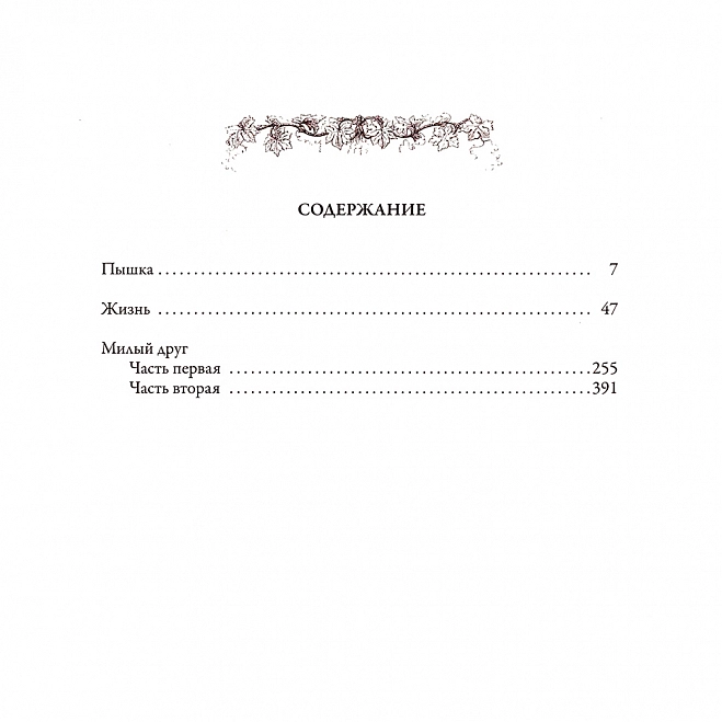 В сборник вошли новелла «Пышка» (1880) в переводе Алексея Николаевича Маслова (литературный псевдоним А. Бeжецкий) (1852–1922) и романы «Жизнь» (1883) в переводе Александры Николаевны Чеботаревской (1870–1925) и «Милый друг» (1885) в переводе Анастасии Николаевны Чеботаревской (1877–1921). Книга проиллюстрирована рисунками французских художников Пьера Жоржа Жаннио (1848–1934), Жюля Мари Огюста Леру (1871–1954) и Фердинанда Бака (1859–1952).