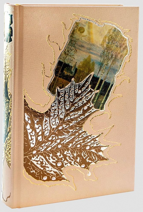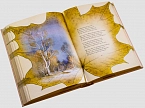 Трехсторонний золотой обрез, золотистое ляссе и подложка, стилизованная под кленовые листья, создают ощущение тепла, исходящего от книги. Переплет с оригинальным тиснением 7-ю видами фольги и цветные иллюстрированные вставки на первой и последней сторонах обложки достойно завершают оформление издания. Окунитесь же в этот омут есенинской поэзии, в глубину его мятущейся и противоречивой души.