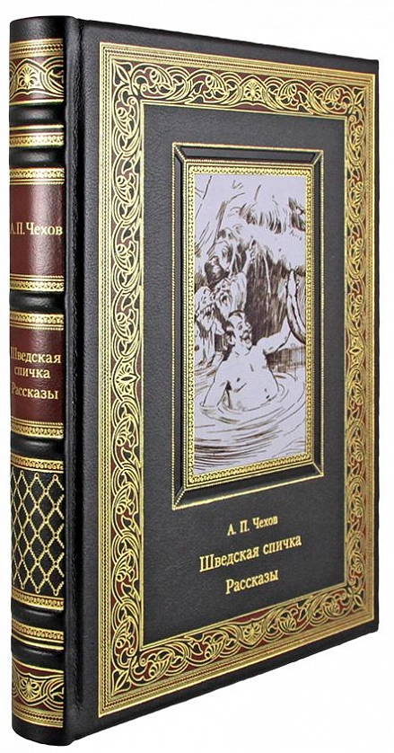 Подарочная книга "Шведская спичка. Рассказы" Чехов А. П. АННОТАЦИЯ Сборник включает шестьдесят один юмористический рассказ А. П. Чехова, в том числе такие известные его произведения как «Дочь Альбиона», «Злоумышленник», «Толстый и тонкий», «Дачники» и «Шведская спичка». Все произведения сборника проиллюстрированы рисунками талантливого чешского художника Франтишека Женишека, который жил и творил на рубеже XIX и XX вв. ОПИСАНИЕ Классический европейский переплёт ручной работы из натуральной кожи. Форзац из дизайнерской бумаги Malmero с тиснением орнамента золотой фольгой. 6 бинтов на корешке, ручной обработки. Каптал золотой из натуральной кожи. Обрез блока - золото с торшонированием. Тиснение блинтовое, золотой и цветной фольгой. Ляссе. Инкрустация кожаной вставкой с полноцветной печатью. Вес 880г