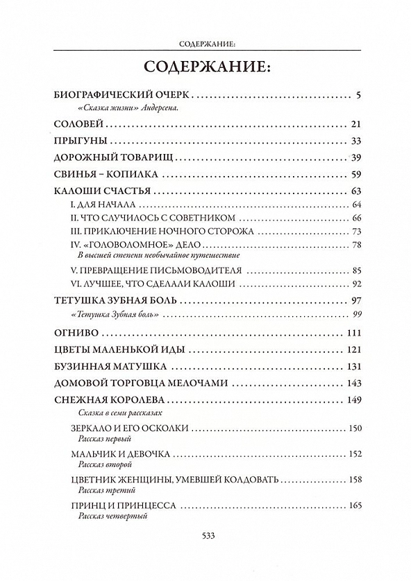 Книга включает сорок три сказки Г. Х. Андерсена в переводе Анны и Петра Ганзен. Среди них такие давно ставшие классикой истории как «Гадкий утенок», «Огниво», «Стойкий оловянный солдатик», «Снежная королева», «Оле-Лукойе», а также другие, менее известные произведения. Сказка «Азбука» дается в переводе Р. Грищенкова. Сборник начинается с биографического очерка писателя, составленного по его воспоминаниям. Прекрасно выполненные иллюстрации Ганса Тегнера помогают юным и взрослым читателям в полной мере ощутить прелесть сказок Андерсена.