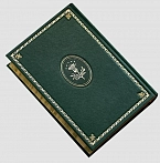 Трехсторонний золотой обрез, классический переплет с тиснением золотой и серебряной фольгой украшает рисунок в виде медальона с монограммой автора, шелковое ляссе дополняет оформление.