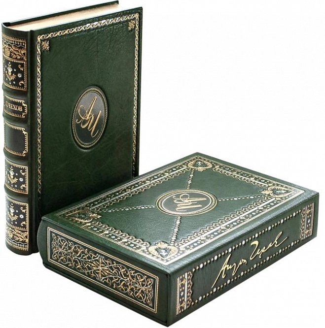 Подарочная книга "Светлая личность" А.П. Чехов, в футляре АННОТАЦИЯ В плеяде великих европейских драматургов... имя Чехова сияет как звезда первой величины", — писал в начале XX века известный британский писатель и лауреат Нобелевской премии в области литературы Джордж Бернард Шоу. Действительно, вклад Антона Павловича Чехова в мировую классическую литературу и драматургию невозможно переоценить. Его искусство в значительной степени определило направление развития театра XX столетия. Юмор, душевность и простота при совершенном отсутствии лицемерия и ханжества отразились в творчестве великого русского писателя, произведения которого не теряют своей актуальности с течением времени. Издание великолепно проиллюстрировано как современными художниками ,выполнившими свои работы специально для этого издания,так и лучшими иллюстраторами произведений Чехова прошлых лет. Представленная серия — настоящий шедевр, воплощающий гармонию содержания и оформления, возрождающий лучшие традиции книгоиздания, безусловно, станет роскошным украшением любой, даже самой изысканной библиотеки в мире. ОПИСАНИЕ Издание напечатано в Словении тиражом 100 экземпляров на элитной мелованной бумаге G-print и переплетено в кожу Kenia Kid (Швейцария). Уникальный кожаный футляр ручной работы с тиснением фольгой на всех сторонках футляра. Трехсторонний золотой обрез, классический переплет с тиснением золотой и серебряной фольгой украшает рисунок в виде медальона с монограммой автора, шелковое ляссе дополняет оформление. В фоторамку в стиле модерн,обрамляющую страницы издания,органично вписаны фотографии,создающие живые образы персонажей Чехова.