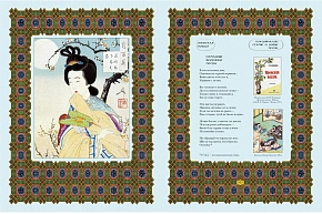 Шелковые каптал и ляссе, форзацы из дизайнерской бумаги, переплет украшен тиснением золотой и серебряной фольгой