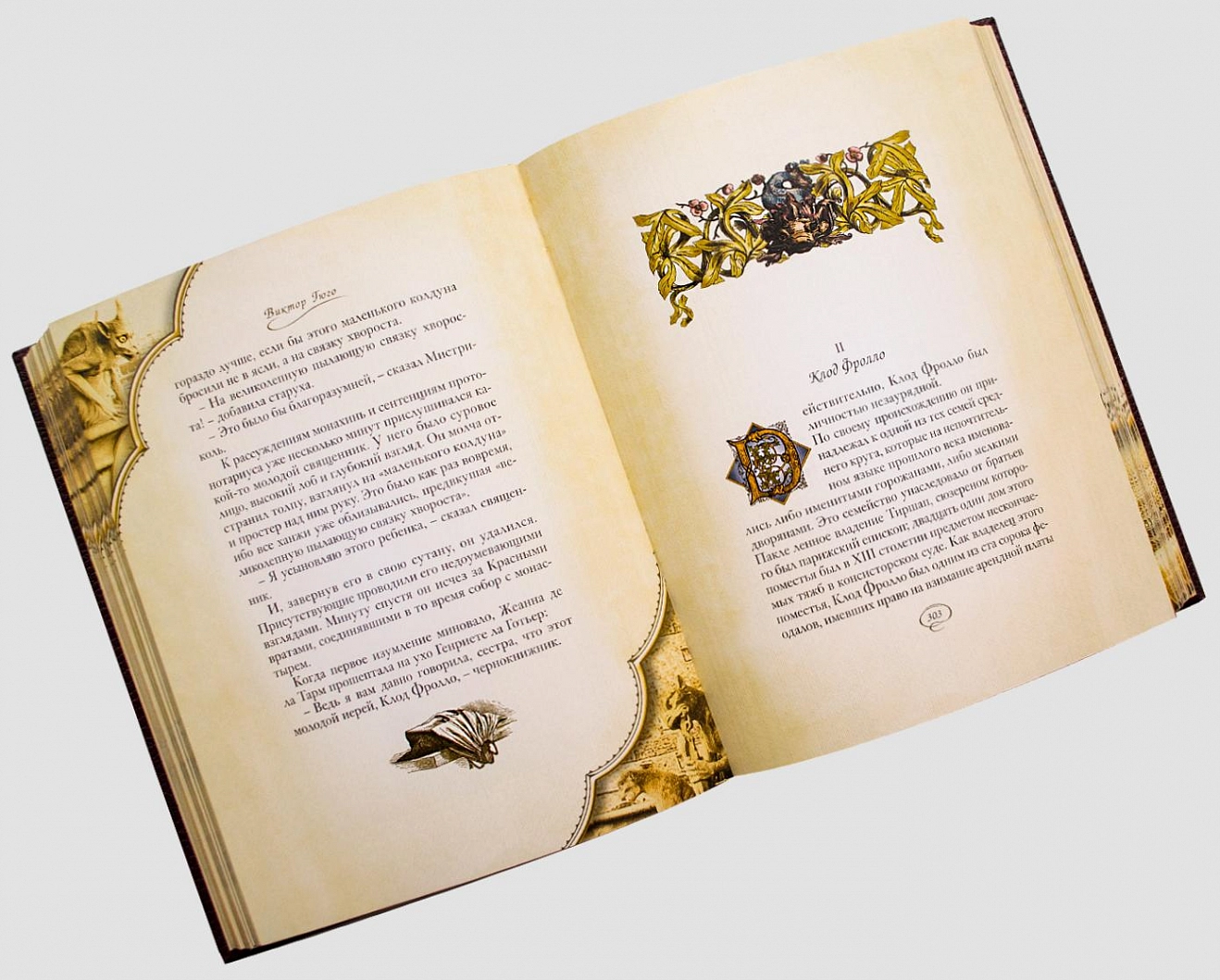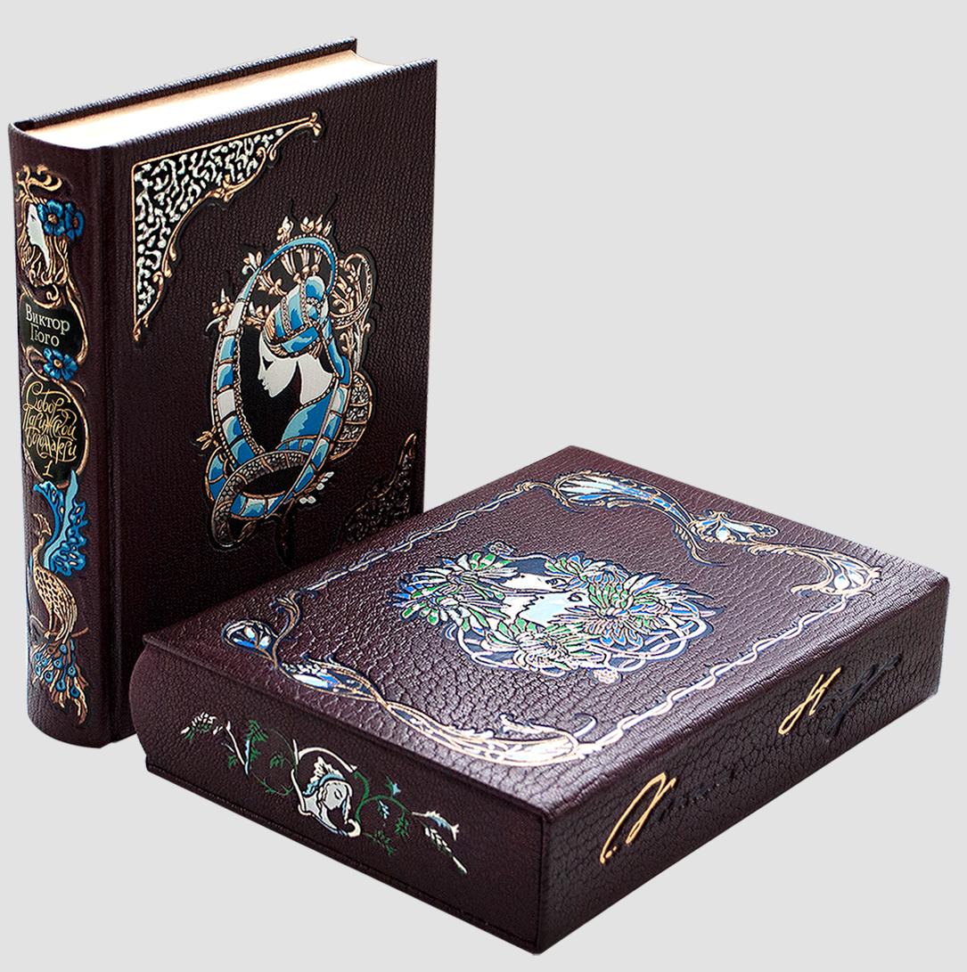 Подарочная книга в футляре "Собор Парижской Богоматери" Виктор Гюго, в 2-х томах АННОТАЦИЯ Знаменитый исторический роман Виктора Гюго "Собор Парижской Богоматери". Именно благодаря его появлению мы можем любоваться одним из самых красивых готических соборов в мире - в самом центре Парижа. Гюго привлек внимание к собору своим произведением, причем сделал это намеренно, так как Нотр-Дам собирались снести. Автор и не скрывал, что главный герой его романа - сам собор Парижской Богоматери. Под его готическими сводами будет разворачиваться драматичная история любви — одна из самых известных и роковых в истории литературы. Интриги и неожиданные повороты, любовь и ревность, месть и вероломство, смерть на эшафоте и гибель от невозможности пережить утрату любимой — на фоне средневековой Франции с ее блеском и ужасами. Это издание произведений заслужило репутацию лучшего в истории по полиграфическому исполнению. Переплет, украшенный золотым и блинтовым тиснением, трехсторонний золотой обрез и цветная декоративная подложка придают изданию стильный и одновременно респектабельный вид. ОПИСАНИЕ Напечатано в Словении лимитированным тиражом на элитной бумаге G-print. Книги переплетены в кожу Maroken (Франция) и помещены в уникальный по сложности выполнения кожаный футляр ручной работы с тиснением фольгой на всех сторонках футляра. Необычный переплет с тиснением 9-ю различными цветами фольги,оригинальные заставки, изящные уголки и рамки и трехсторонний золотой обрез создают потрясающе изысканное обрамление издания, способного заинтересовать самого придирчивого ценителя прекрасного.
