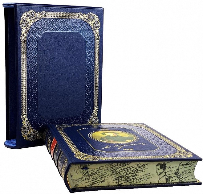 Ваш Пушкин ( в футляре) АННОТАЦИЯ «ВАШ ПУШКИН». Книга-альбом. Стихотворения и поэмы («Руслан и Людмила», «Цыганы», «Полтава», «Медный всадник»), роман в стихах «Евгений Онегин», проза («Повести покойного Ивана Петровича Белкина», «Дубровский», «Пиковая дама», «Капитанская дочка»), сказки («Сказка о золотом петушке» и др.), драматургия («Маленькие трагедии», «Борис Годунов», «Русалка»), автографы и рисунки. ОПИСАНИЕ "Богато оформленное собрание, представлено в подарочном издании. Цельнокожаный переплёт из натуральной шагрени, ручной работы, украшен цветной кожаной вставкой, а также серебряным и золотым тиснением. Изображённые на обложке узнаваемые сюжеты и образы дополняют дизайн. Корешок декорирован бинтами. Текст книги напечатан на офсетной бумаге . Обрез оформлен в технике ""Перо павлина"". Ляссе из шёлковой ленты. Форзац цельный из дизайнерской бумаги. Дублюра окатана золотом. Книги представлены в оригинальной подарочной упаковке. Цветовое сочетание переплёта и упаковки может отличаться от представленных на фото. "