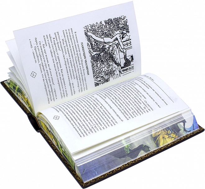 Подарочное издание в художественном кожаном переплете. Книги отпечатаны на дизайнерской бумаге, обрезы блоков с трех сторон украшены тематическими рисунками. Книги из серии «Библиотека приключений» имеют одинаковый дизайн рельефного и цветного тиснения, но с использованием различных сочетаний цвета кожи и фольги.