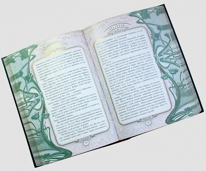 Подарочная книга "Женское счастье" А.П. Чехов, в футляре АННОТАЦИЯ Антон Павлович Чехов – великий русский прозаик и драматург. Это собрание сочинений А.П.Чехова включает в себя всю художественную прозу (рассказы, повести, юморески, очерки, литературные пародии), а также драматические произведения. Произведения разбиты на тома в хронологическом порядке. В издании собраны великолепные иллюстрации к произведениям Чехова прошлых лет и дополнены иллюстрациями современных художников, которых продолжает вдохновлять его творчество. Герои Чехова – смешные, трогательные и трагические предстают перед нами, оживленные воображением талантливых графиков. Это издание произведений Чехова заслужило репутацию лучшего в истории по полиграфическому исполнению. Переплет, украшенный золотым и блинтовым тиснением, трехсторонний золотой обрез и цветная декоративная подложка в стиле ар нуво на каждой странице придают изданию стильный и одновременно респектабельный вид. ОПИСАНИЕ Книга напечатана в Словении тиражом 100 экземпляров на элитной мелованной бумаге G-print и переплетенное в кожу Kenia Kid (Швейцария). Уникальный кожаный футляр ручной работы с тиснением фольгой на всех сторонках футляра. Трехсторонний золотой обрез, классический переплет с тиснением золотой и серебряной фольгой украшает рисунок в виде медальона с монограммой автора, шелковое ляссе дополняет оформление. В фоторамку в стиле модерн ,обрамляющую страницы издания,органично вписаны фотографии,создающие живые образы персонажей Чехова.