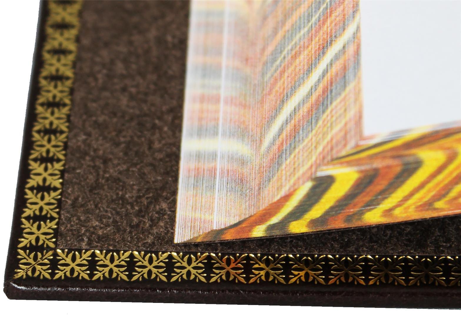 Богато оформленное собрание, представлено в подарочном издании. Цельнокожаный переплёт ручной работы, украшен золотым иблинтовым тиснением. Корешок декорирован бинтами. Текст книг напечатан на офсетной бумаге. Обрез оформлен художественным изображением. Ляссе из шёлковой ленты. Форзац цельный из дизайнерской бумаги.Дублюра окатана золотом.