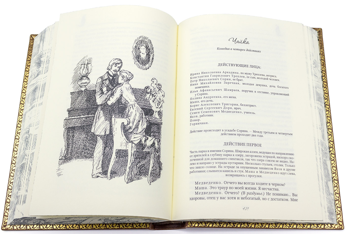 Подарочные книги "Избранные произведения" Антон Павлович Чехов АННОТАЦИЯ Подарочные книги в кожаном переплёте. Антон Павлович Чехов избранное. Повести и рассказы, пьесы Чайка, Три сестры, Вишневый сад в подарочном издании, художественный кожаный переплет. ИСПОЛНЕНИЕ Кожаный переплет, цветное и блинтовое тиснение специально разработанное для данного издания. Обрезы книжного блока отшлифованы и нанесен тематический рисунок. Вы можете заказать подарочное издание в кожаном переплете любой понравившейся книги, репринтное издание редкого или антикварного издания. Мы создаем многотомные собрание сочинений в уникальном кожаном переплете для личных кабинетов и офисов. ОПИСАНИЕ Том 1: Том 2: Повести и рассказы Письмо к ученому соседу Радость Торжество победителя Случай с классиком Смерть чиновника Злой мальчик Толстый и тонкий В Москве на Трубной площади Брожение умов Хирургия Хамелеон Винт Маска Живая хронология Стена В бане Канитель Налим Лошадиная фамилия Егерь Злоумышленник Женское счастье Кухарка женится Унтер Пришибеев Шило в мешке Детвора Тоска Панихида Ведьма Шуточка Агафья День за городом Хористка Нахлебники Мечты Ванька Верочка Выигрышный билет Счастье Сирена Мальчики Каштанка Спать хочется Степь Припадок Попрыгунья Палата №6 Володя большой и Володя маленький Скрипка Ротшильда Студент Учитель словесности Анна на шее Повести и рассказы Дом с мезонином Моя жизнь Мужики Печенег В родном углу На подводе Человек в футляре Крыжовник О любви Ионыч Случай из практики Новая дача Душечка По делам службы Дама с собачкой На святках В овраге Архиерей Невеста Пьесы Чайка Три сестры Вишневый сад