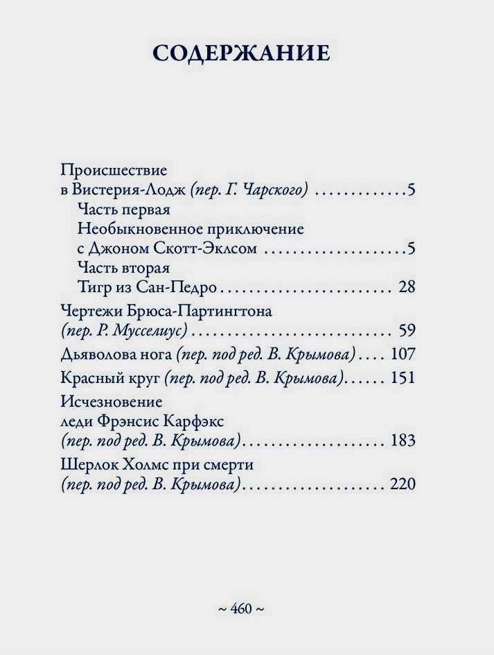 1 том. В сборник вошла повесть «Этюд в багровых тонах» — первое произведение Артура Конан Дойла о знаменитом сыщике Шерлоке Холмсе и его друге докторе Ватсоне. В издании также представлен рассказ-пародия «Как Ватсон научился приемчикам», не вошедший в каноническое собрание рассказов о проницательном детективе и написанный Конан Дойлом специально для библиотеки Кукольного домика королевы Марии.