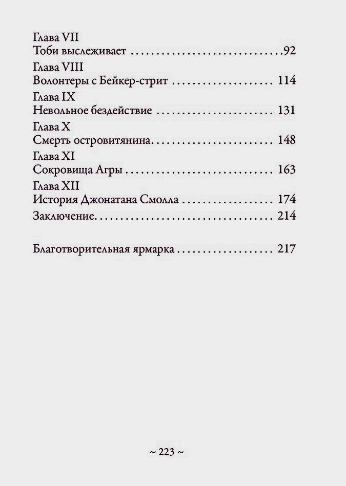 2 том. В книге представлена детективная повесть «Знак четырёх». В ней давно полюбившийся читателям сыщик Шерлок Холмс раскрывает тайны обладателей сокровищ Агры, а его верный друг доктор Джон Ватсон впервые встречает свою будущую жену. В издание также вошёл рассказ «Благотворительная ярмарка», написанный Дойлом для сбора средств на нужды Эдинбургского университета.